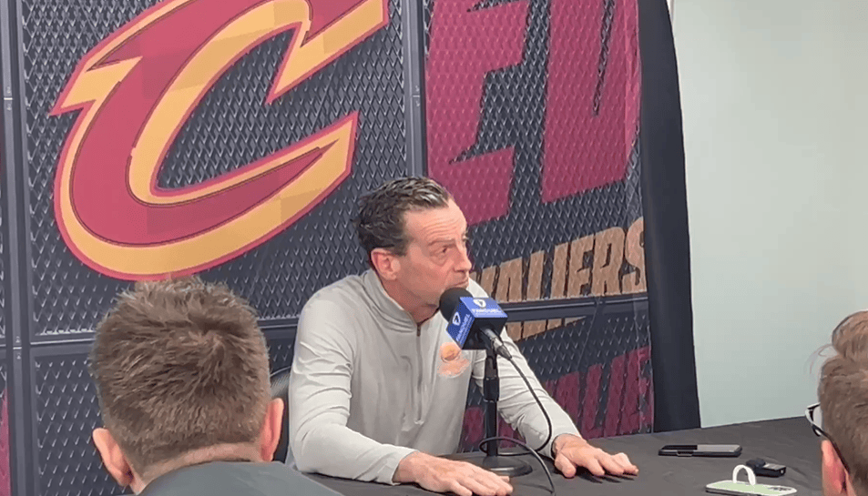 虎扑04月01日讯 今日对阵湖人赛前,骑士主帅肯尼-阿特金森在采访中谈到勒布朗-詹姆斯作为掩护人的威胁: